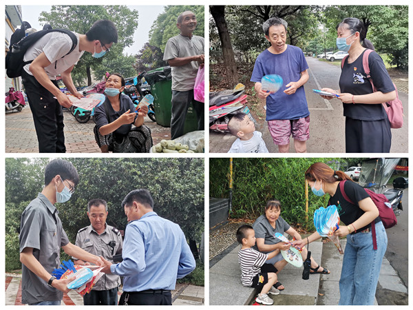 “中国共产党自1921年成立以来,带领中国人民取得了举世瞩目的伟大成就”,“进入新时代,我国日益走近世界舞台中央,不断为人类作出更大贡献”,“六十多年来,蚌医一直始终坚持社会主义办学方向,目前正为实现‘全国知名区域一流高水平医科大学’的目标努力奋斗”……在社区花园、商业店铺、街头巷尾,同学们将精心制作的党史宣传单和印有党史知识的扇子分发给社区居民,并向他们热情介绍百年大党的光辉历程和蚌埠医学院的发展近况。一页页传单传递着厚重的历史,一把把扇子带来了夏日的清凉,大家纷纷停下脚步悉心聆听,有的还与同学们交流起自己的青年时光。不一会儿,500张传单和500把扇子便分发完毕。