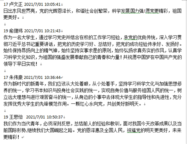 我们党的一百年,是矢志践行初心使命的一百年,是筚路蓝缕奠基立业的一百年,是创造辉煌开辟未来的一百年。在中国共产党诞辰100周年来临之际,支部学生党员们在支部学习通党员教育平台为党的百年诞辰献上最诚挚的祝福。