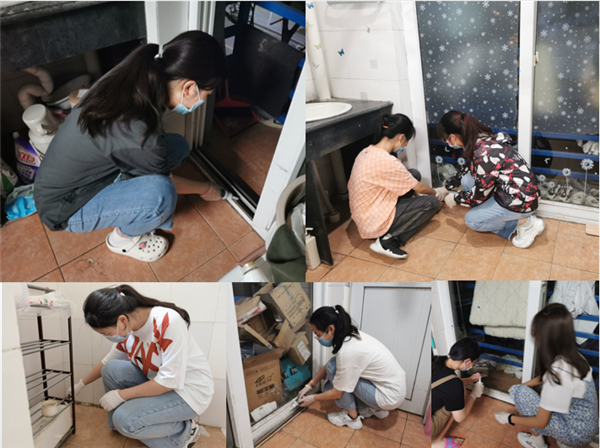 第四党支部在学生宿舍开展“亮身份 树形象 做表态——学生宿舍灭蟑螂”活动,活动中党员主动在宿舍的床铺和桌面贴牌亮明党员身份,并身先士卒服务同学,起到很好地模范带头作用,学生们对党员们的服务表示满意。