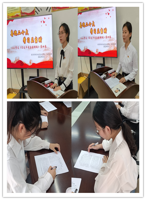 党委第三、四党支部组织围绕《习近平谈治国理政》第四卷和习近平总书记系列重要讲话精神,通过回顾、领学、交流分享等形式开展“喜迎二十大·学习正当时”系列党员学习教育。