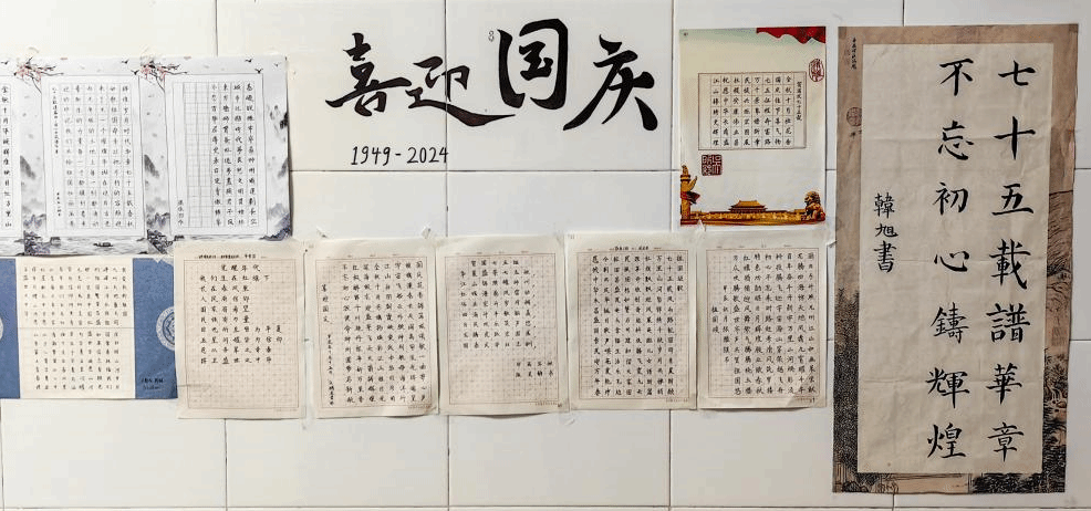 活动自启动以来,得到了来自年级各专业同学的积极响应,同学们纷纷挥毫泼墨,以锦绣文章表达对祖国的深情厚意。经过前期宣传,共收到了来自不同班级的数十幅作品,涉及楷书、行书等多种书法风格。评选环节由各班派出学生代表组成评审团。经过仔细审阅,最终有20幅作品脱颖而出,荣获优秀作品奖项。这些作品不仅展现了作者们深厚的书法功底,更体现了他们对祖国的无限热爱和美好祝愿。优秀作品的展出环节在实验楼A座举行,吸引了众多师生驻足观赏,他们对获奖作品给予了高度评价。