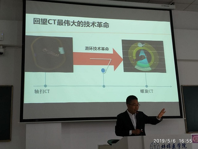 2008届医学影像学专业毕业生陈先锋来院交流,陈先锋校友目前在上海联影医疗设备有限公司CT产品事业部工作,负责CT设备临床应用培训工作。副院长陈建方向校友介绍了我院专业建设、学科发展及学校升大学准备等情况。本次来访,陈先锋校友为我院同学们做了“CT核心技术发展”报告,报告从CT系统机架技术、低剂量技术、探测器技术等七个方面全面介绍了CT最新发展及临床应用。通过报告,使我院同学坚定了专业学习信心,了解了CT最新技术及临床用。最后,陈先锋同学还结合自己的求学及工作经历,给同学们在大学期间的学习生活提出了建议。