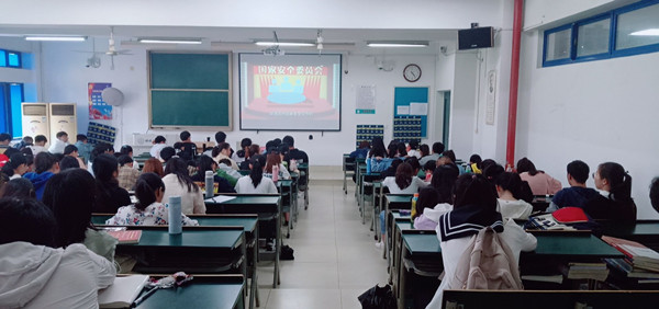 2018年级全体同学在理论教学楼205教室召开以“增强国家安全意识,自觉维护国家安全”为主题的学习活动。
