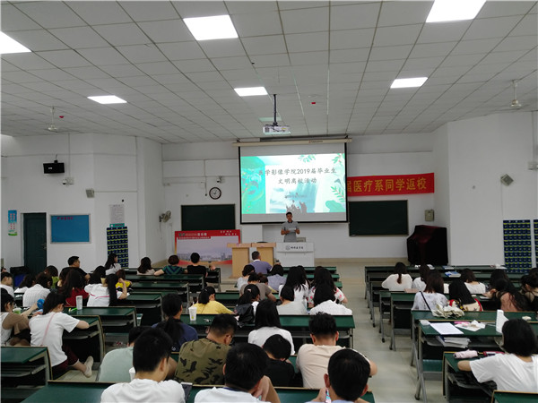 学院党总支书记冯忠兰同志做文明离校动员报告。当前就业形势不容乐观,冯忠兰勉励暂未就业的毕业生们要及时就业,尽快找到自己的立足之地。他提醒大家,步入工作岗位以后,要保持饱满的学习热情,积极投入工作,努力提升自我,尽量多地拿“证”。他还叮嘱大家,毕业在即,大家要学会处理好各类矛盾,爱惜公共财物,以健康文明的方式告别母校,为学弟学妹们做出好的榜样。最后,他衷心祝愿2019届毕业生鹏程似锦,梦想成真,蚌医作为永远的家,欢迎大家常回来看看!