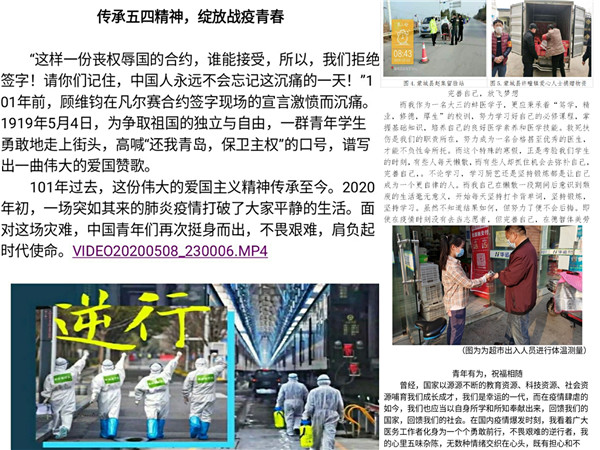 在5月4日-5月14日特开展以“五四精神传承有我、疫情防控贡献有我”为主题的征文比赛。