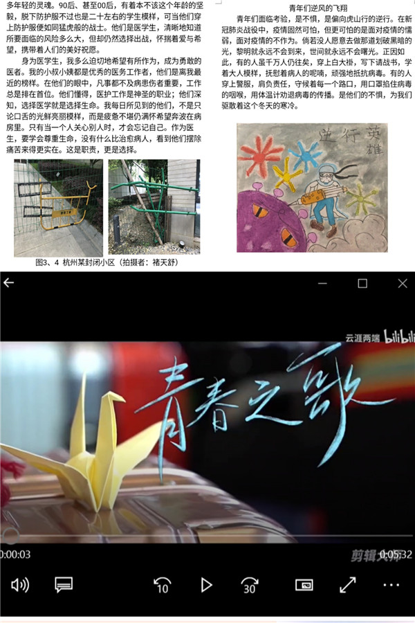 各年级同学纷纷踊跃投稿参加,充分展现了影像学子对“五四精神传承有我”主题教育活动的高度积极性。本次活动在形式上较以往比赛有所创新,采用了图文并茂的形式,同学们在征文中附上了相关图片、照片和短视频,可谓是声情并茂、精彩纷呈;在内容上以践行五四精神,弘扬抗疫大爱为中心,字里行间都展现了青年医学生们自觉肩负起民族未来医疗卫生事业的决心。