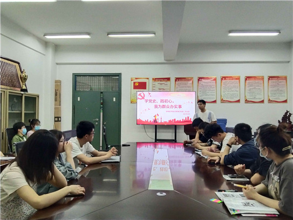 第二党支部5月22日晚在A座208开展“学党史、践初心,我为群众办实事”实践活动,支部党员张智、汤淳清对2020级大学生创新创业项目申请人开展现场指导。