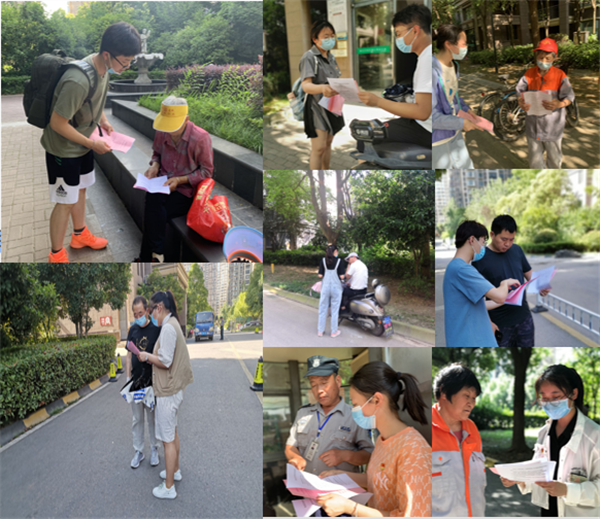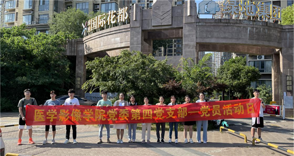 第四党支部组织在校党员赴绿地花都社区和龙湖春天社区,开展“党旗飘扬——夏季防疫宣传”党员活动日志愿服务活动。