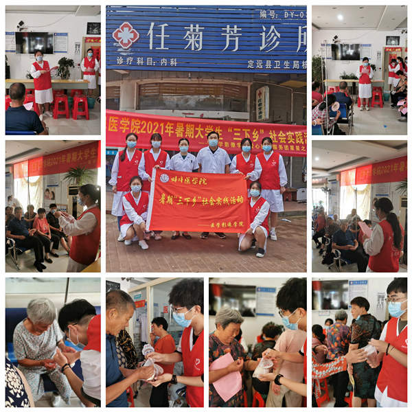 爱心医疗服务团“星星之火小队”响应学校“永远跟党走,奋进新时代”的号召,重点围绕健康中国战略、“美好生活·民法典相伴”主题,协助滁州市定远县任菊芳诊所,开展爱心义诊、民法典普法宣讲、问卷调查、健康宣讲等社会实践活动。