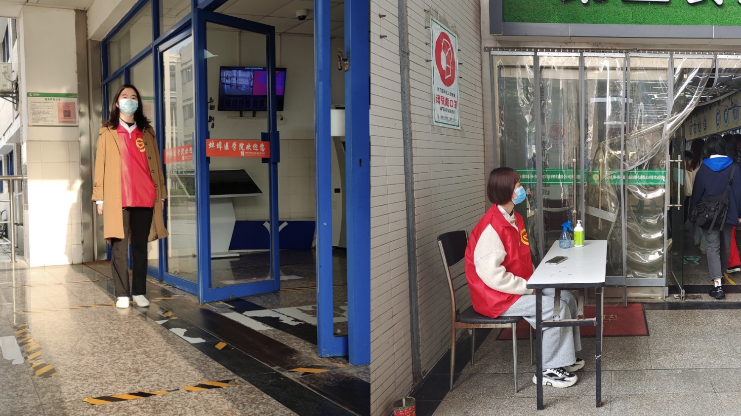 青年志愿者协会开展了疫情防控——教学楼、食堂站岗活动,积极落实疫情防控倡议,坚定携手抗击疫情。