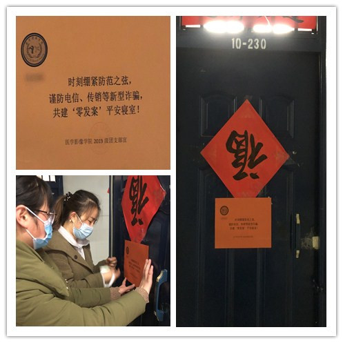 主题教育收尾阶段,学院在年级学生中开展了号召共建“零发案”平安寝室有关活动,学生们将宣言贴在宿舍门上,一方面提高了大学生对网络诈骗集团诈骗手段的了解,增强自我保护意识,另一方面强化了对诈骗术的处理能力,学会利用法律手段维护自身利益,更是一种表态,以寝室为单位树立了基本的防范意识,能够理性应对诈骗情况,保护切身利益。