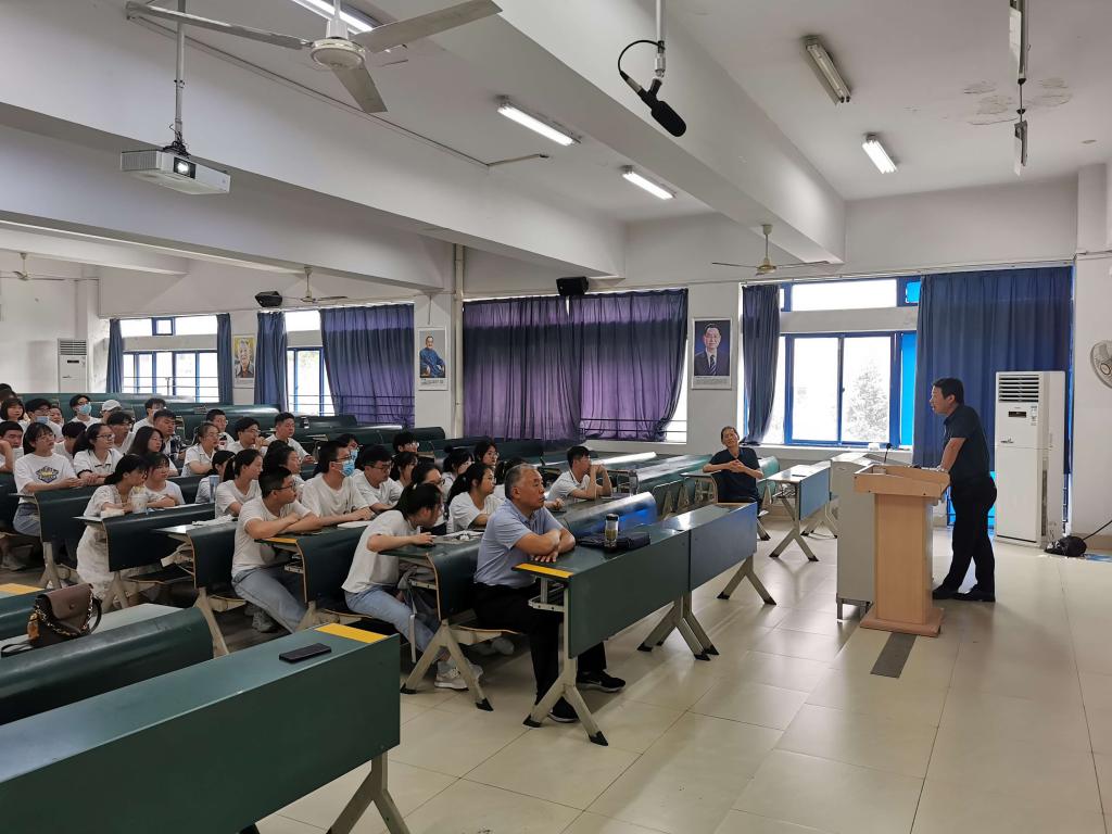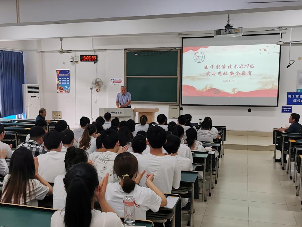 医学影像技术2019级特于6月10日在校理论楼302教室开展学生实习前思政安全教育大会。学院党委书记冯忠兰、院长管俊昌、副院长陈建方出席会议,辅导员刘静老师主持会议,医学影像技术2019级全体学生参加会议。