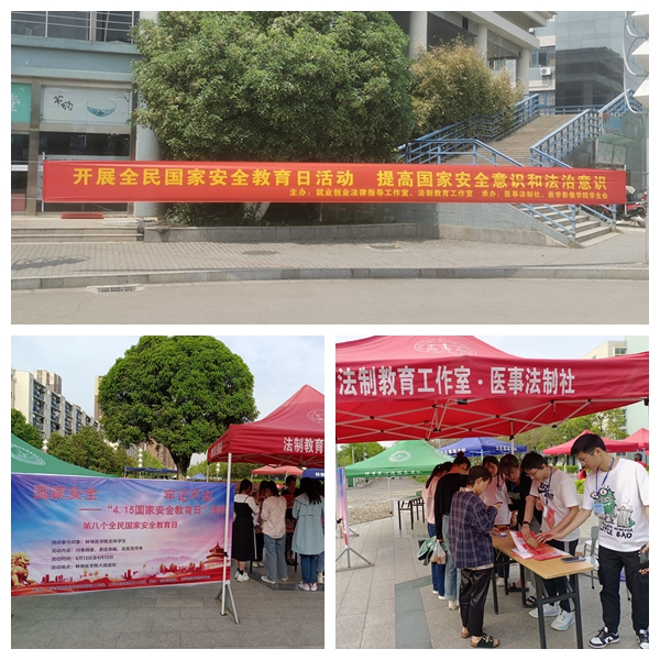 学生会和医事法制社在大学生就业创业指导工作室、大学生法制教育工作室的指导下,共同举办国家安全教育日宣传和调研活动。宣传活动从4月13日开始启动,通过张贴展板、悬挂条幅、网络宣传等形式开展宣教,并积极发放问卷开展大学生国家安全意识问卷调查,为今后更好地开展国家安全教育奠定基础。