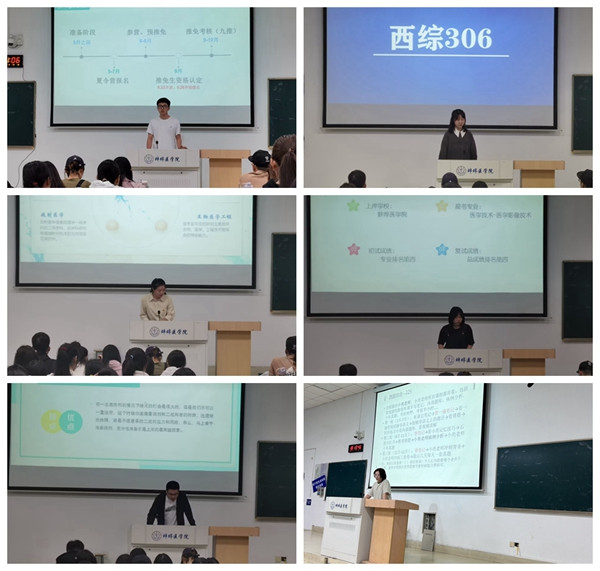 会上,毕业生代表张智、李姝影、姚馨荷、彭潇雨、恽雅琴、陈凌分享了考研经验,从推免、备考、调剂等多个方面向学弟学妹传经送宝。张智分享了自己的推免经历,从材料准备、推免流程、心路历程等方面进行介绍;李姝影分享了自己取得高分的备考计划,交流了备考过程中常见的问题;姚馨荷分享了如何高效备考“306西医综合”;彭潇雨介绍了她的备考计划及备考“法宝”;恽雅琴介绍了考研注意事项和备考经验;陈凌分享了他的调剂历程,以自身经历深刻阐明了“坚持就是胜利”的道理。六位毕业生代表通过精彩的分享践行了成人电影