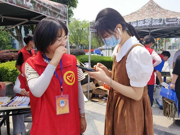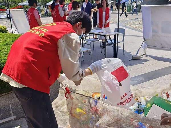 青年志愿者协会于5月13日在学校大圆盘处举办了“废品融情,与爱同行”环保实践活动。