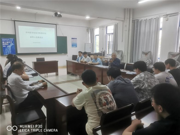 学院院长管俊昌指出,保卫祖国、抵抗侵略是中华人民共和国每一个公民的神圣职责,依照法律服兵役和参加民兵组织是中华人民共和国公民的光荣义务。学院党委副书记吴涛宣讲了高校大学生参军入伍的优待政策,介绍了《安徽省激励大学生参军入伍若干措施》《蚌埠市征兵工作激励措施》等,着重强调了入伍保障、军人职业发展、退役安置等优待政策。学院副院长陈建方结合我院退役大学生士兵成功升学的案例,进一步激励毕业生参军入伍。其他与会老师结合身边的事例积极鼓励毕业生参军入伍。