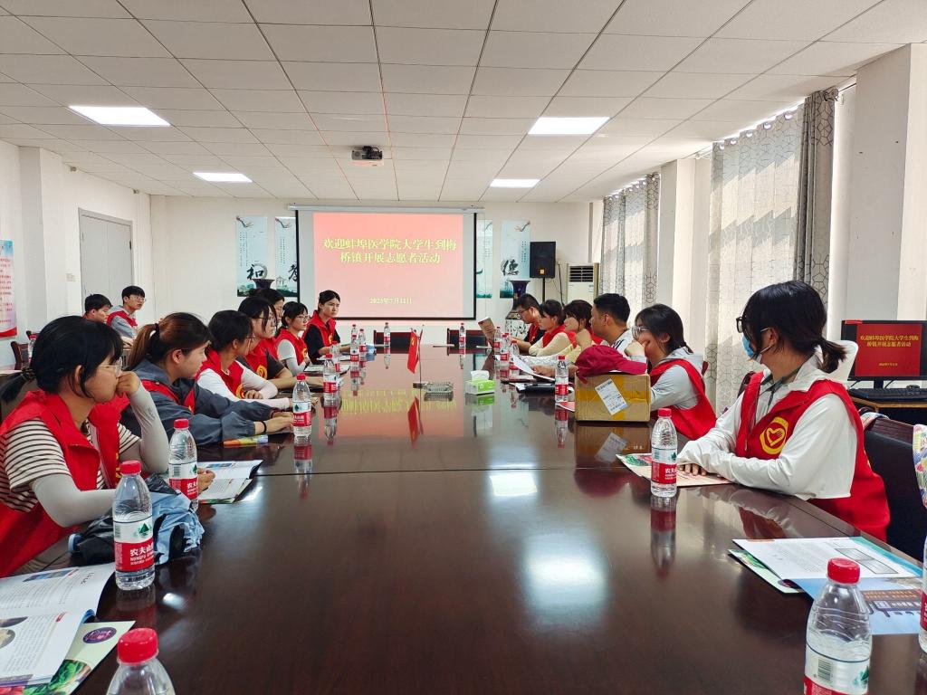 “医恋乡土青年筑梦团”于7月11日来到蚌埠市梅桥镇,开展以“投身乡村振兴,助力健康中国”为主题的暑期“三下乡”社会实践活动,活动内容包括“亲密座谈,走进梅桥”、“爱心义诊”、“防溺水知识宣讲”、“走访村落,健康调研”等。