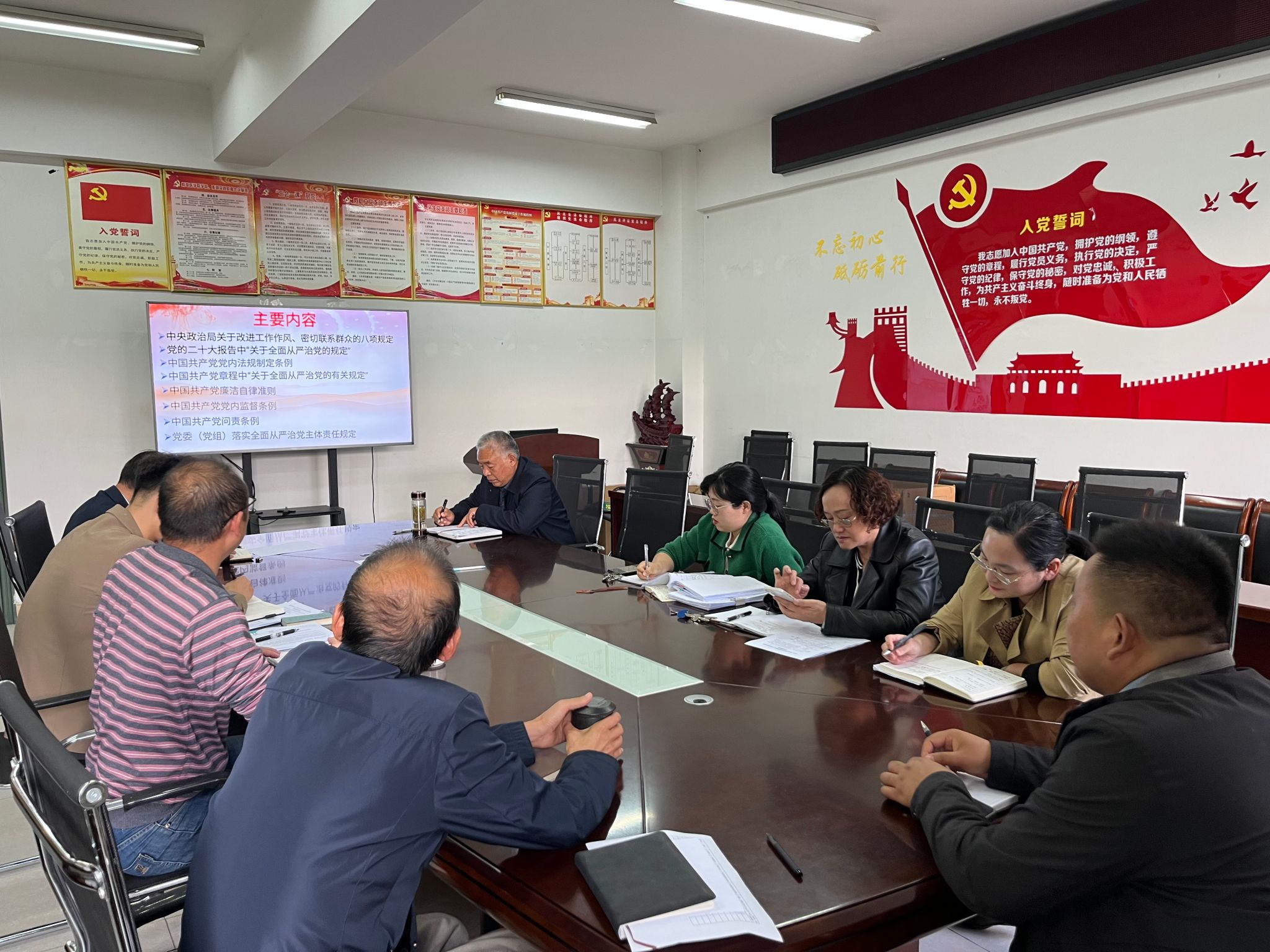 学院党委副书记、纪委书记吴涛带领大家认真学习了《中央政治局关于改进工作作风、密切联系群众的八项规定》、党的二十大报告中“关于全面从严治党的有关规定”、党章中“关于全面从严治党的有关规定”、《中国共产党廉洁自律准则》《中国共产党党内监督条例》《中国共产党问责条例》《党委(党组)落实全面从严治党主体责任规定》等内容。与会同志围绕习近平总书记关于全面从严治党的重要论述和上述学习内容开展研讨交流。