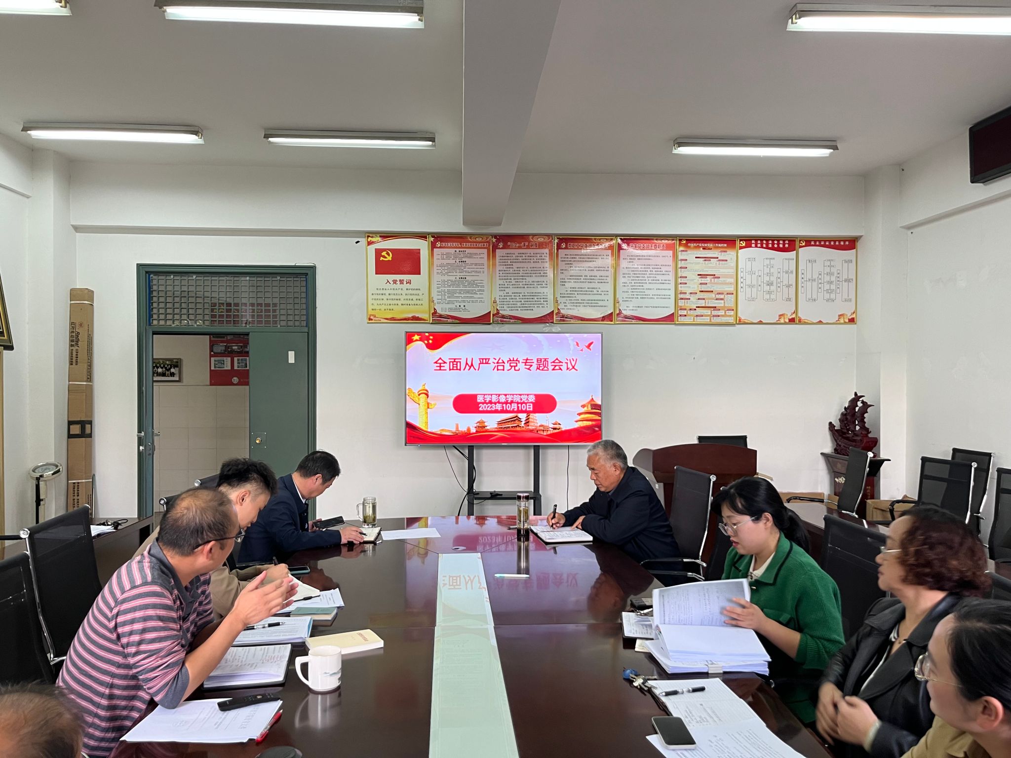 党委、纪委组织召开全面从严治党专题会议。会议由学院党委书记冯忠兰主持,学院党委委员、纪委委员、党支部书记参会。