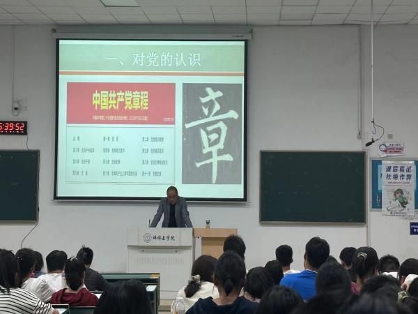 吴涛从“对党的认识”“为何要入党”“如何才能入党”三个部分进行讲解。第一部分着重介绍了党章的具体内容,领学了党的基本知识和党史的相关内容。第二部分讲解了党的百年奋斗的伟大成就,分享了黄旭华、路生梅、郭永怀等优秀共产党员的感人事迹,教育和感召学生,促使他们深切理解为什么要入党。第三部分阐释了入党条件和流程,从“忠诚爱党爱国,坚定理想信念”“严守法律纪律,发挥先锋作用”“学好专业本领,服务人民健康”“奋斗砥砺前行,勇担时代大任”等方面对广大新生提出了要求,用习近平总书记对广大青年的寄语,激励他们坚定不移听党话、跟党走,立志做有理想、敢担当、能吃苦、肯奋斗的新时代好青年。