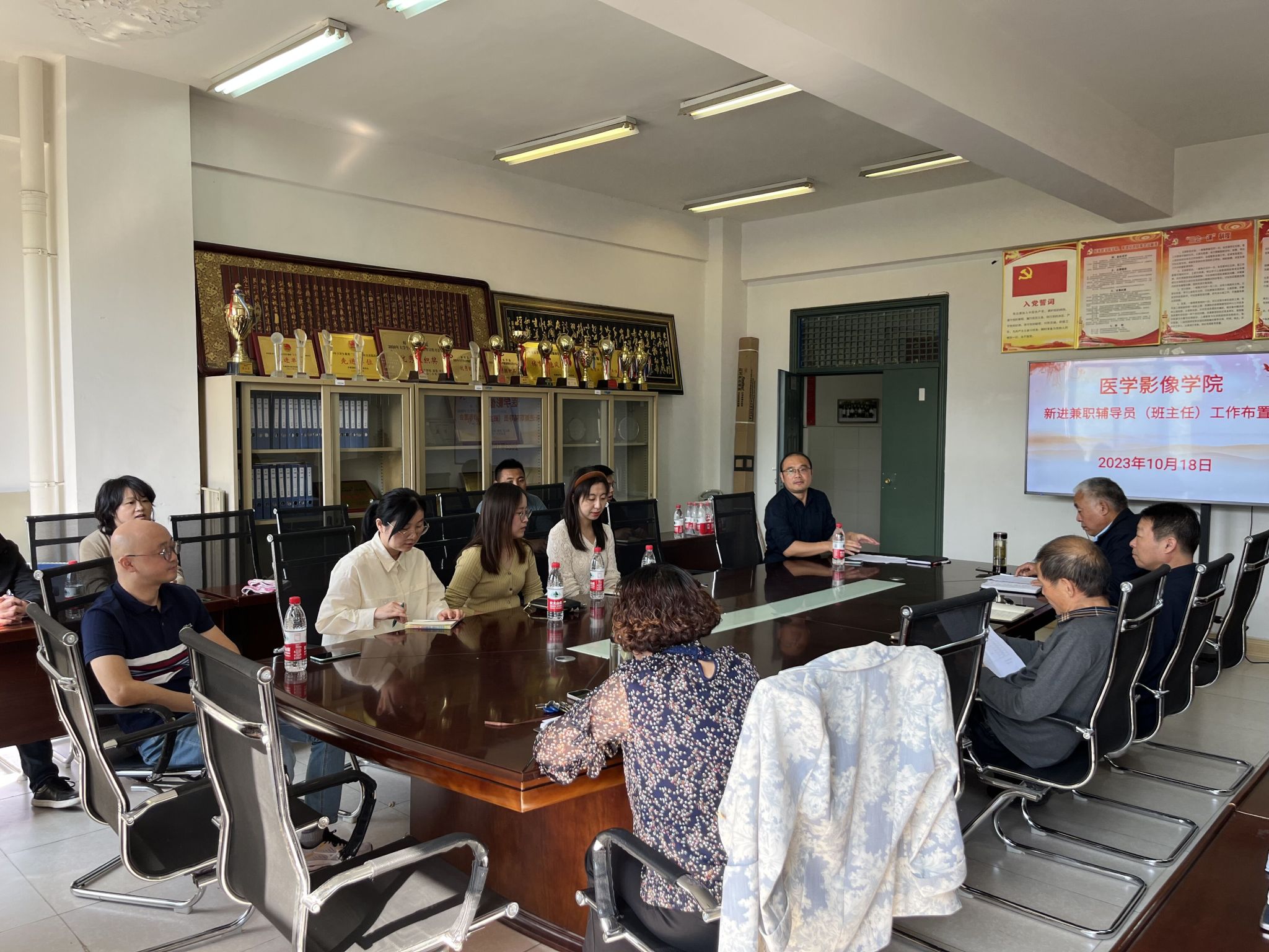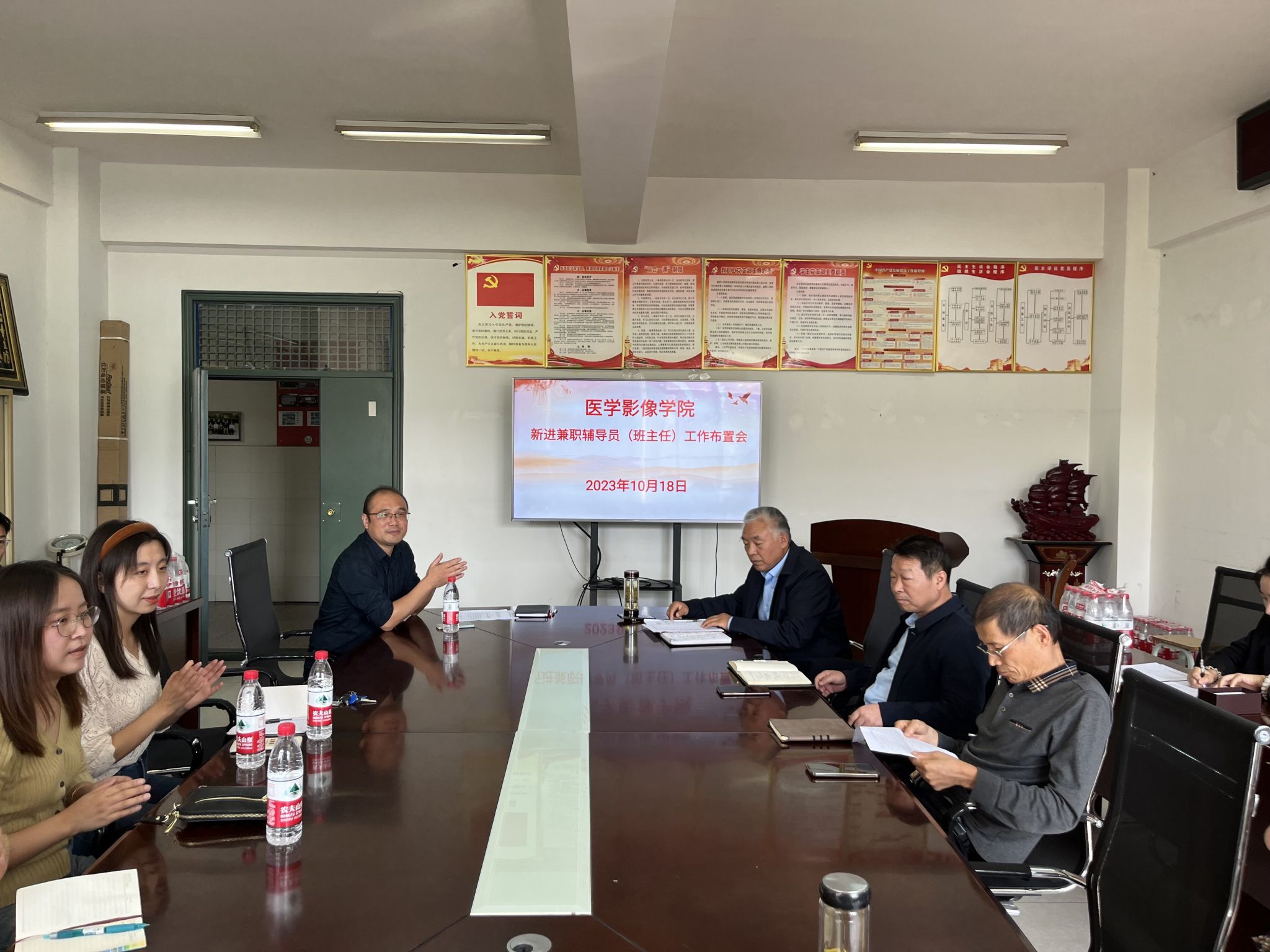于10月18日上午在学院会议室召开新任兼职辅导员工作布置会。会议由学院党委副书记吴涛主持,学院党委书记冯忠兰、院长管俊昌、副院长陈建方、各年级专职辅导员和新任兼职辅导员参加。