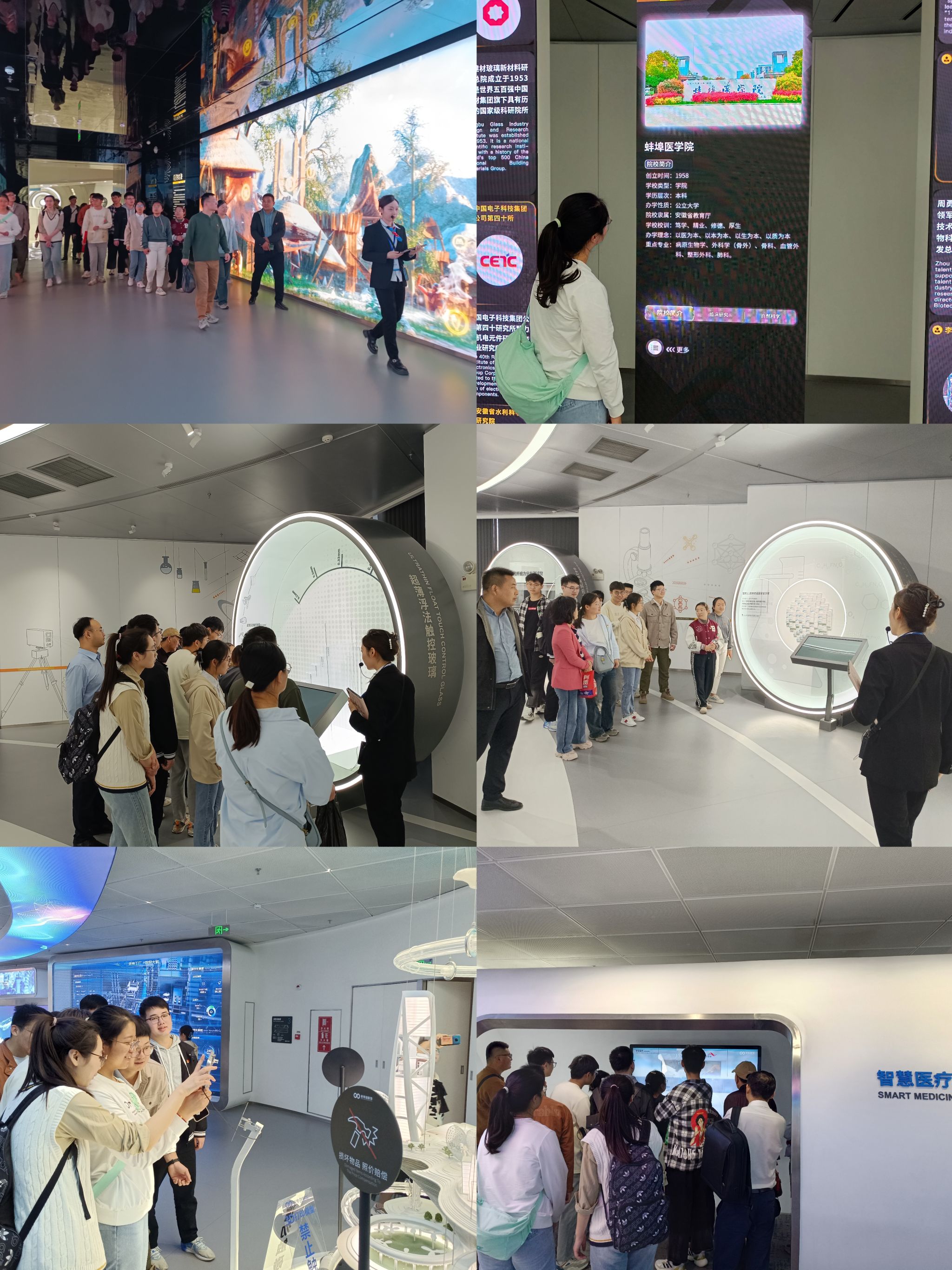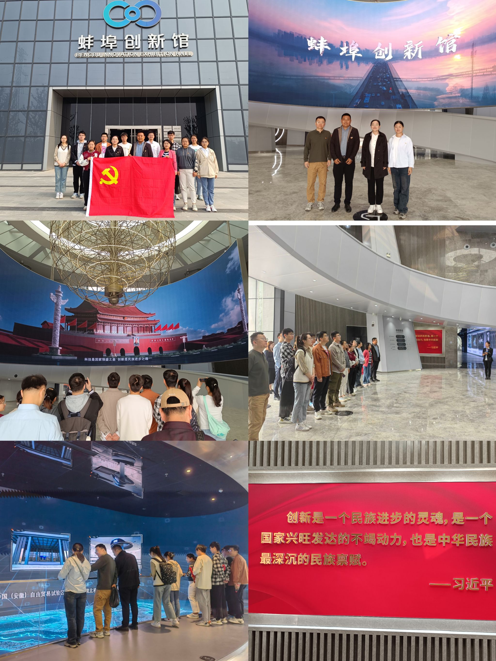 活动中,在讲解员的带领下,师生党员们依次参观了重大创新成果展区、战略新兴产业布局展区和创新平台展示区。在科技创新展区,大家深入了解蚌埠市在科技创新领域取得的重要成果和前沿技术;在新兴产业区,大家对对医疗器械、生物医药等领域的创新成果兴趣满满;在创新馆文化展区,大家体验到蚌埠市的历史文化底蕴和传统文化特色,对蚌埠市丰富多样的文化遗产表示了钦佩之情;在创新馆艺术展区,大家欣赏了蚌埠市艺术家的作品,深感其精湛的艺术技巧和创作灵感的启发;在创新未来展区,大家实践参与,身临其境感受未来科技感。