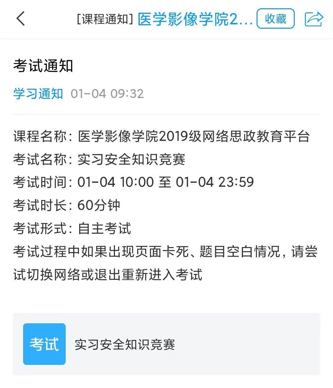 支部坚持年级融合以“党、团、班、学”一体化管理,开展“实习安全知识竞赛”活动,通过学习通网络思政平台采用考核的形式,从临床实践重要意义、医德医风培养、遵守纪律规范、加强团结协作等方面出题,加强对实习生的安全教育和管理,以“四最”劳动观,党员们带领年级全体实习生务实勤奋、加油实干;在明确学习目标,提升专业技能和业务能力的同时,严守医院科室管理规定,保证自身安全,从而顺利完成实习,助力个人成长成才。