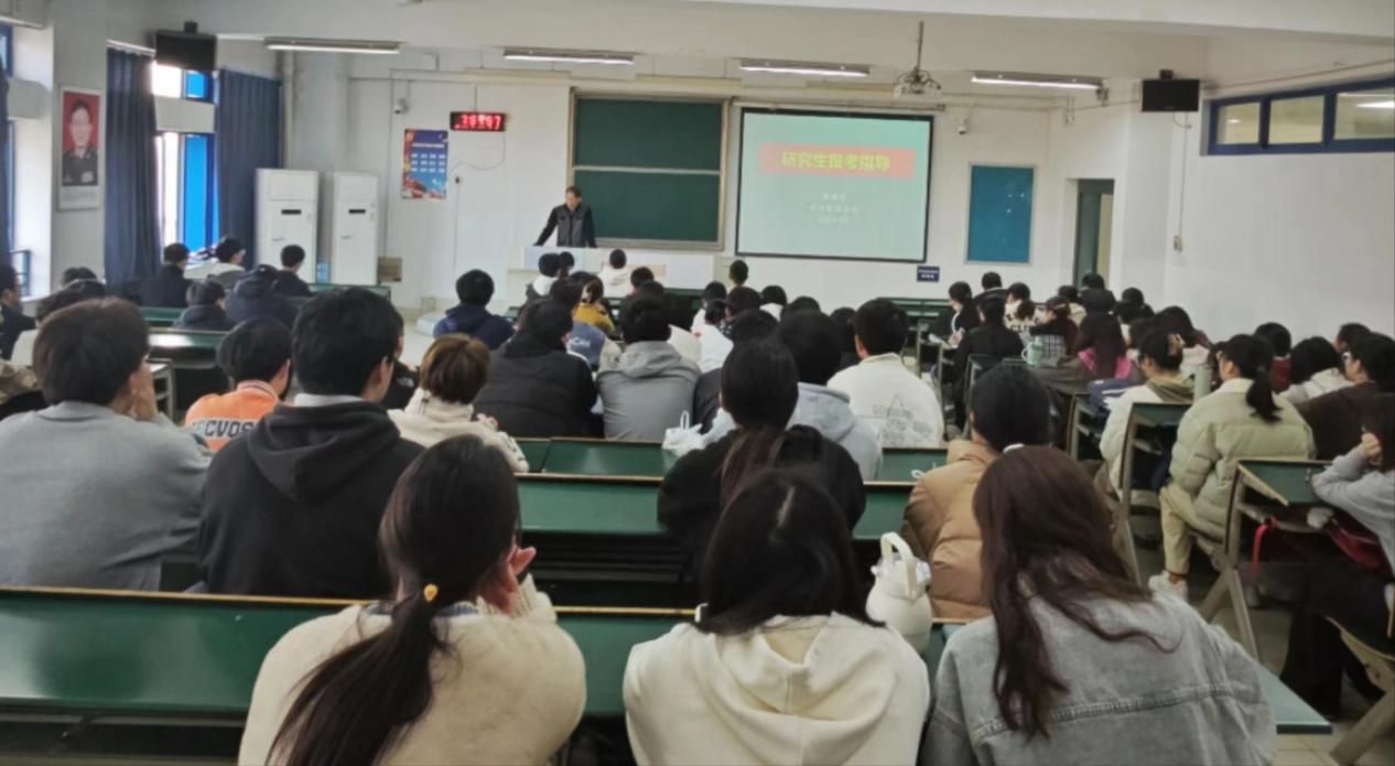 组织开展了2025届研究生报考指导培训。培训由学院副院长陈建方主讲,党委副书记吴涛、辅导员乔兴、王兆雯及各专业90余名学参加。