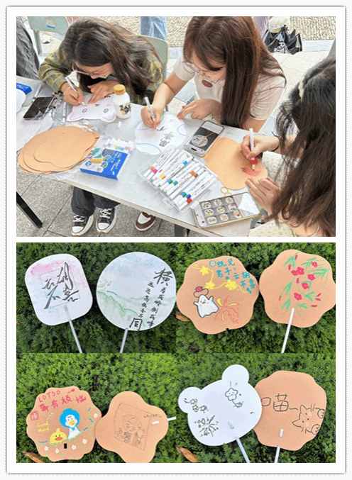 以爱为韵,绘一扇芳华。本次活动通过手绘团扇,向参与者传递美好的祝福。活动前期通过QQ官方号、张贴海报等多种渠道进行广泛宣传,吸引学生踊跃报名。学生们在领取到精美的团扇后,充分发挥自己的想象力与创造力,将缤纷的内心世界与传统工艺有机结合,绘制出了一幅幅独具匠心、别具巧思的精美团扇,以团扇之美表心达意,以绘制之劳强心健体。