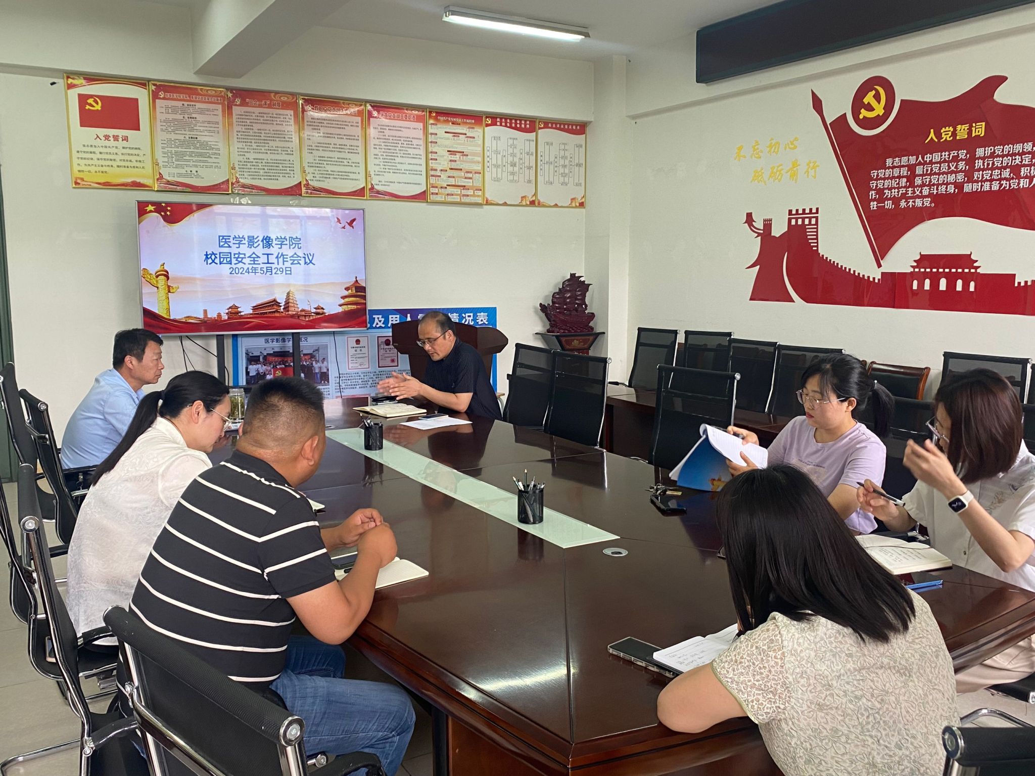 会上,吴涛传达了国家、省以及学校的有关校园安全的制度文件,强调了学校校园安全工作会议的有关要求,要求进一步提高校园安全意识,织牢织密安全防线,重点关注学生安全以及实验室安全等,就心理健康、消防安全、交通安全、法纪安全、意识形态、社会实践安全、网络诈骗防范、毕业生文明离校教育等关乎师生安全的有关事宜,提出了明确具体的要求,就各年级、实验中心、党政办等提出的有关安全事宜进行分析和研判,并进行工作布置和安排。