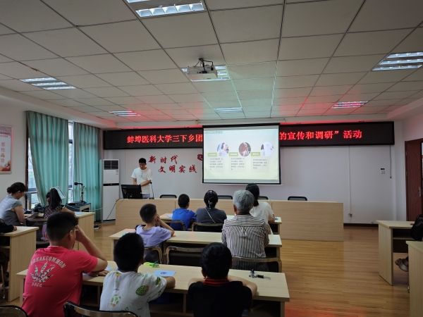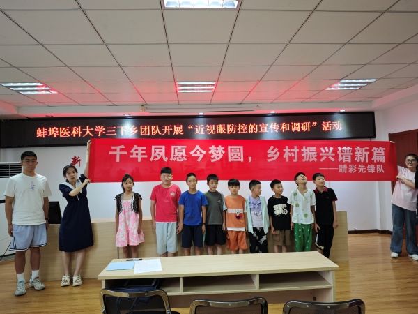 暑期三下乡社会实践团队——睛彩先锋队于蚌埠市喜迎门社区党群服务中心开展近视眼防护知识宣传实践活动。