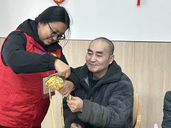 活动前期,协会成员咨询了老年公寓的工作人员,结合老年人需求策划了具有“健康养老”与“文化养老”相结合的特色活动内容。志愿者们提前采购艾草锤手工包以及牛奶、饼干等活动所需物资,并为老人们撰写暖心信件、编排文艺节目。活动当日,志愿者们统一身着红马甲,倾听老人们讲述过往的峥嵘岁月,并协助老人们制作艾草锤。此外,志愿者们还通过节目表演、互动游戏等形式拉近与老人的距离,现场欢声笑语不断。活动尾声,志愿者们将手写信件赠送给老人,并合影留念,定格温馨瞬间。