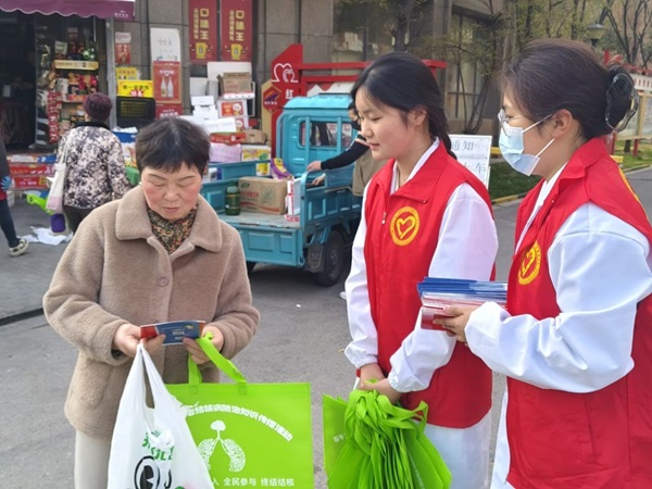 图二 志愿者们给社区居民分发志愿册
