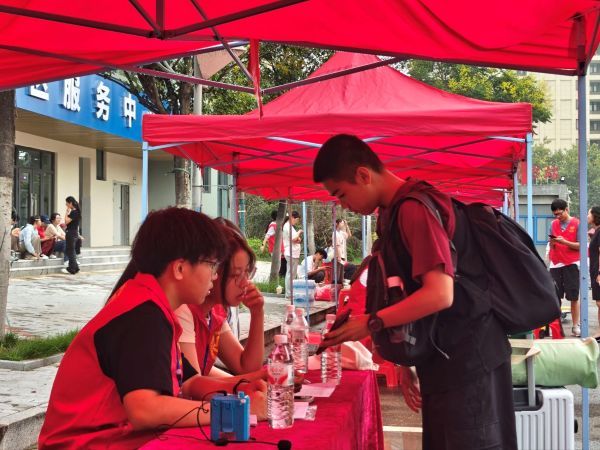 在筹备阶段,学院周密安排、多方协调,在火车站、学校东、南门等处分别设置志愿服务点,在理论楼A座楼下协助新生办理入校手续、核验与整理入学材料,全力保障迎新流程顺畅高效。迎新当天,志愿者与工作人员满怀热情,积极帮助新生搬运行李、答惑解疑、介绍校园布局与入学注意事项。尽管天气炎热,大家始终坚守岗位,以积极的精神面貌进行工作,确保整个迎新过程井然有序。