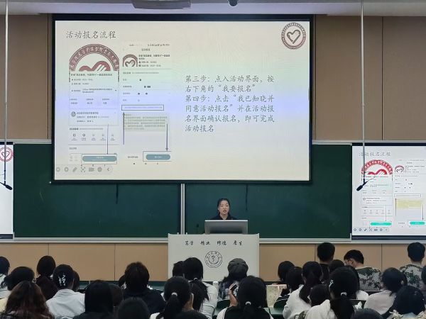 学生会主席孙馨蕊与青年志愿者协会主席贾宁宇分别讲解了PU口袋和志愿汇的使用方法。随后,院团委兼职团干丁宁为新生介绍了入团流程与奖学金评定的核心内容,为同学们指明发展方向。在交流提问环节,新生踊跃提问,高年级学生耐心解答,现场气氛热烈,展现了新老生互助共进的良好氛围。