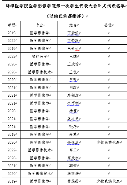 第一次学生代表大会正式代表20名,经代表资格审查小组审查,现将正式代表名单公示如下: