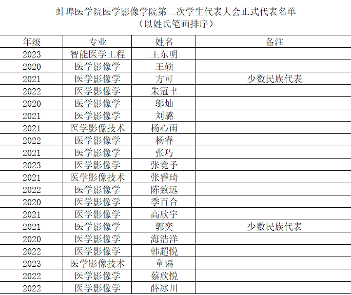 第二次学生代表大会正式代表20名,经代表资格审查小组审查,现将正式代表名单公示如下: